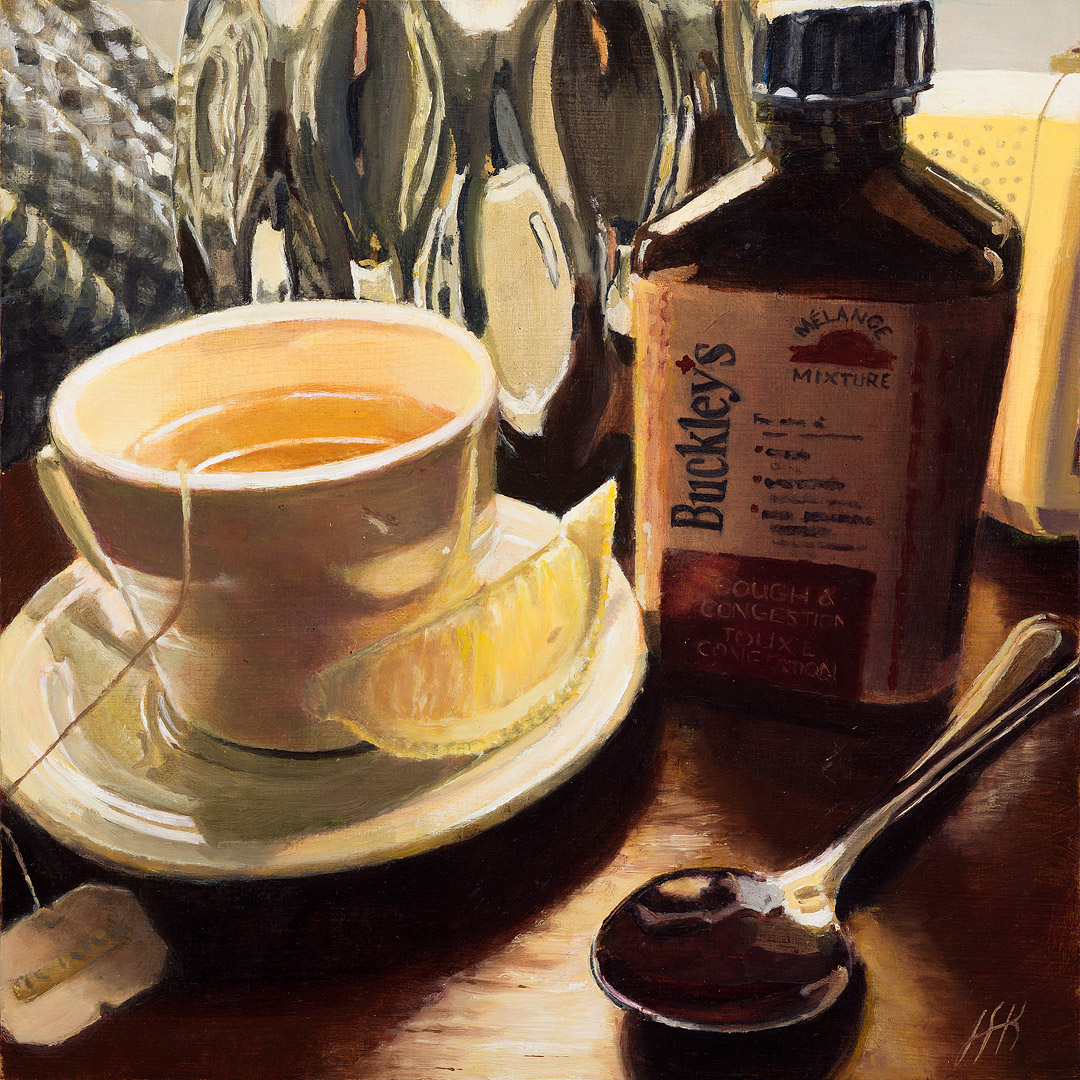 It Tastes Awful. And It Works. – 10”x 10” (25cm x 25cm) oil on gallery width panel (2025) – SOLD